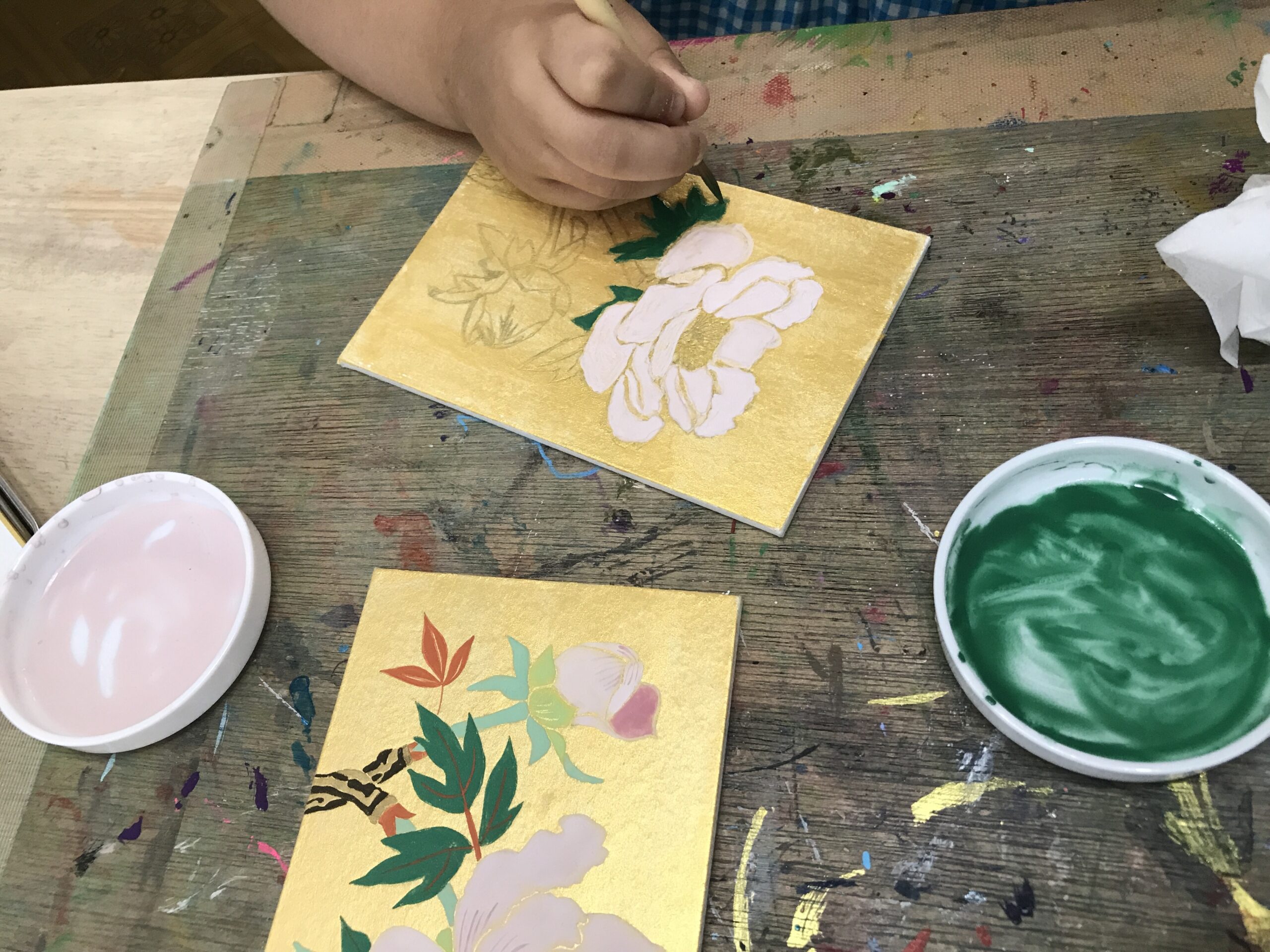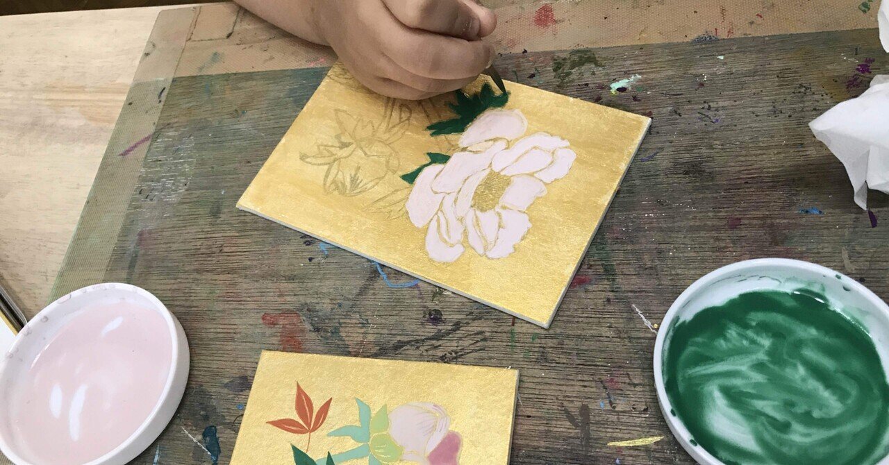 【授業報告】アトリエぽっけ 2025.7.20(日)早朝びすけっとクラス 未分類 X Facebook はてブ LINE コピー 2025.08.08 【授業報告】アトリエぽっけ 2025.7.20(日)早朝びすけっとクラス|hiokumiki_artこんにちは! アトリエぽっけです😊 今回の日曜早朝びすけっとクラスは、日本画制作をしました。 前回からの続きで日本画制作の様子です。 背景に金色の絵の具を塗りました。岩絵の具と、膠とお水を、指で溶いていきます。絵の具が溶けたら、いよいよお花...