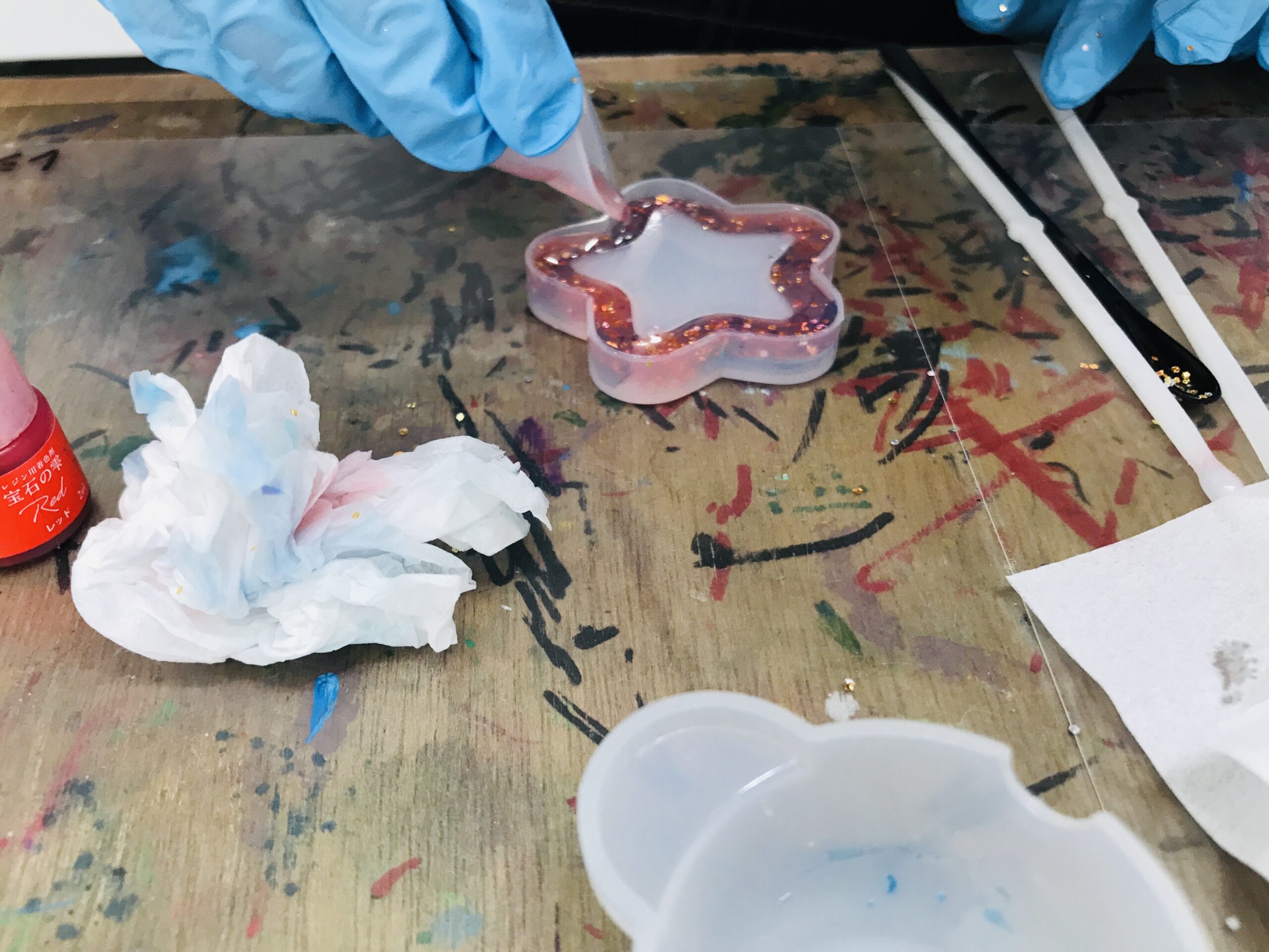 こんにちは! アトリエぽっけです😊 今回の日曜あめだまクラスは、レジンキーホルダー制作をしました💫 海の生き物を作りたい!ということで、まずはクジラを作ってくれています🐳ラメを投入〜透け感がとても綺麗ですね! ラメが透けて見えるのも綺麗です...