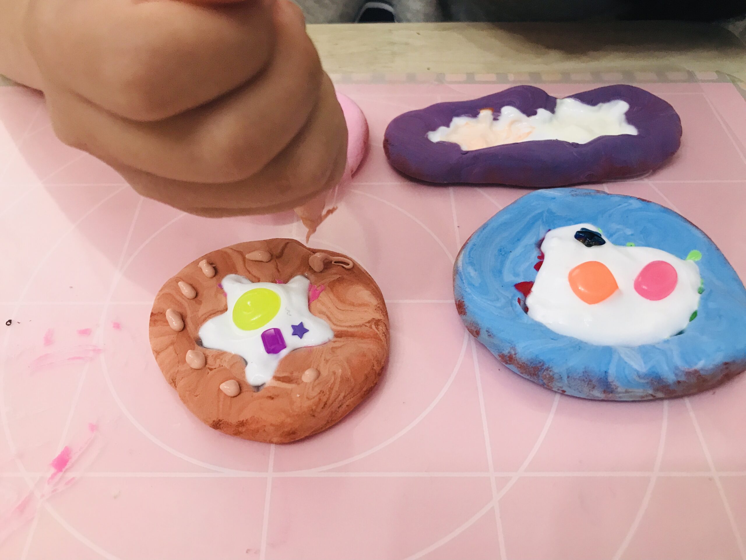こんにちは! アトリエぽっけです😊 今回の土曜早朝びすけっとクラスは、粘土工作と、オリジナルシール制作と、ステンドグラス制作等をしました💎 こちらは、粘土工作の様子です。 不思議な模様の綺麗な粘土ができましたね✨ジンジャークッキーの形の手が...
