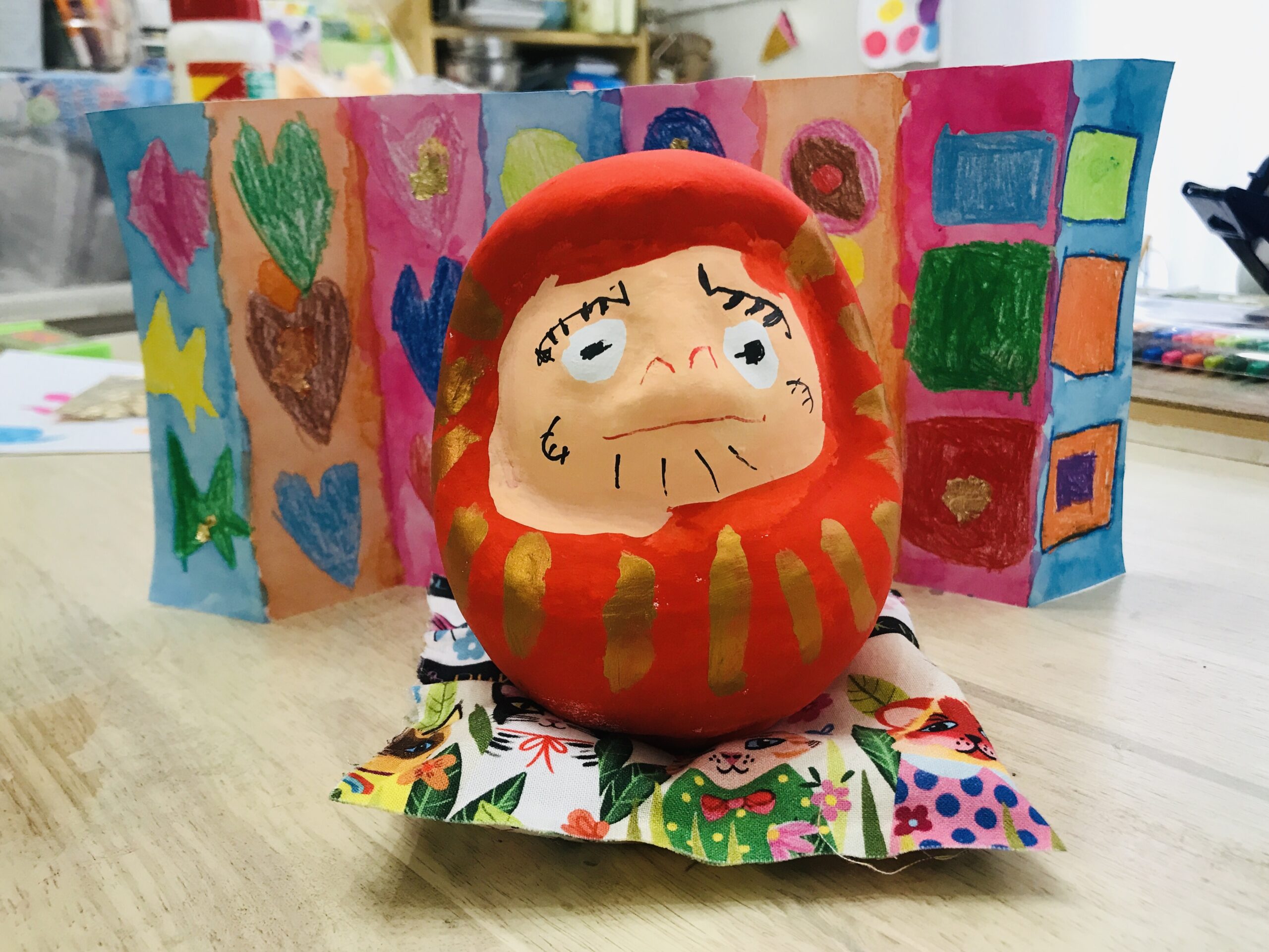 こんにちは! アトリエぽっけです😊 今回の土曜早朝びすけっとクラスは、ダルマ制作と、ハーバリウムボールペン制作と、シール制作等をしました🐰 こちらは、前回からの続きでダルマ制作の様子です。 前回ダルマの絵付けの工程が終わったので、今回はダル...