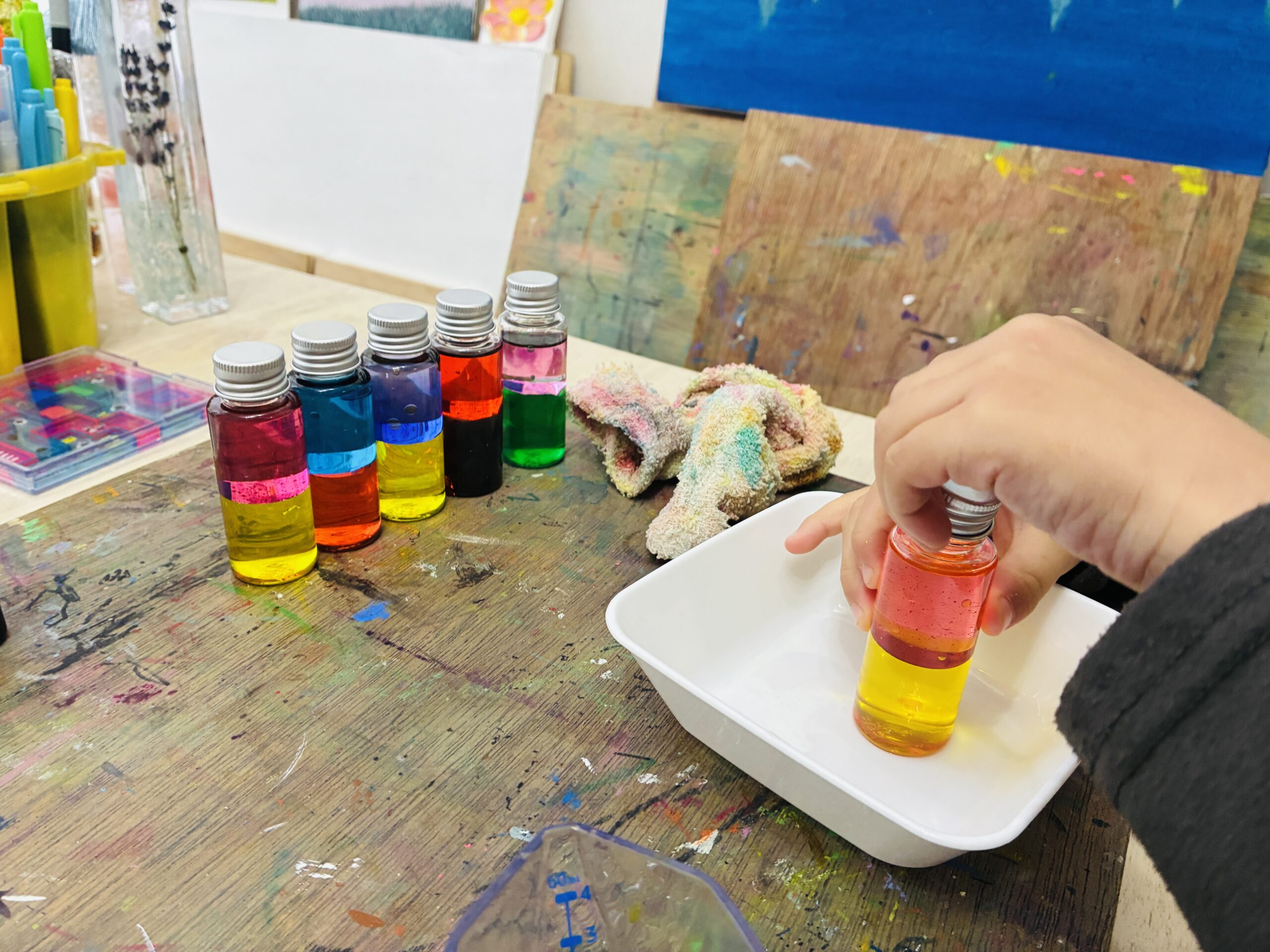 【授業報告】アトリエぽっけ 2026.3.21(土)早朝びすけっとクラス 未分類 X Facebook はてブ LINE コピー 2026.03.24 【授業報告】アトリエぽっけ 2026.3.21(土)早朝びすけっとクラス|hiokumiki_artこんにちは! アトリエぽっけです😊 今回の土曜早朝びすけっとクラスは、センサリーボトル制作をしました🧪 今回は、ボトルの中に2種類の異なる液体を入れて、どれだけ振っても混ざらない2色の不思議なボトルを作りました♪バッチリ2色に分かれましたね...